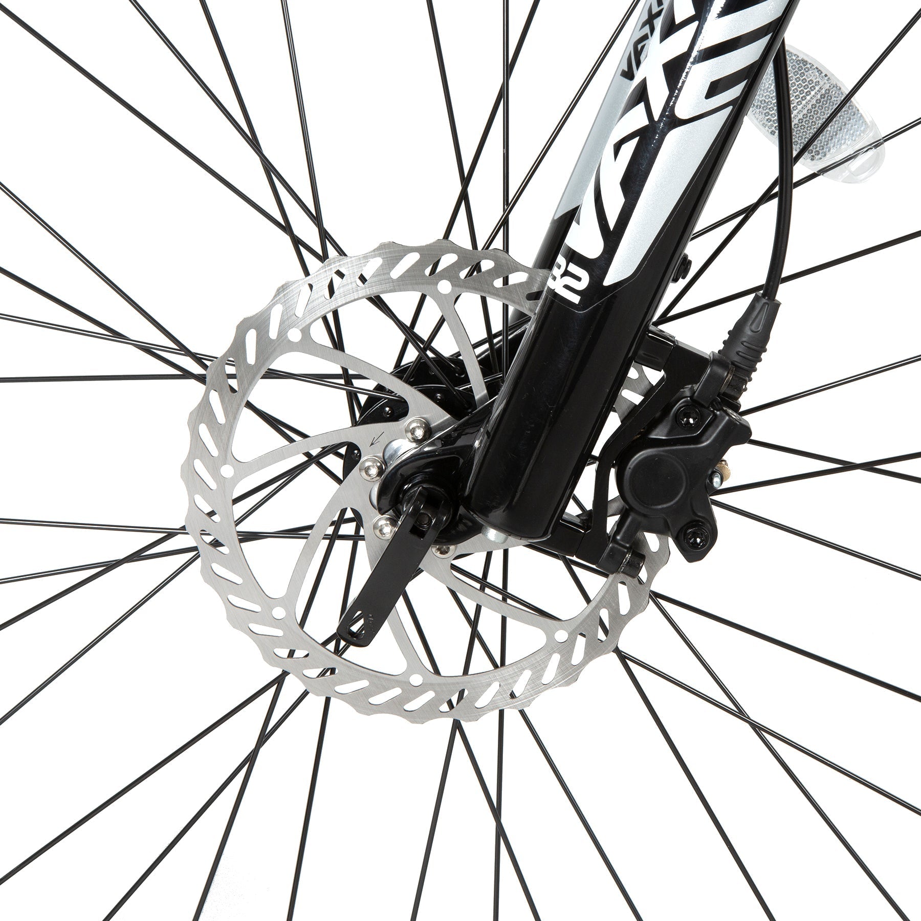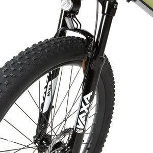 Our suspension fork features 100mm of travel, compression adjustment.It effectively absorbs most of the jarring bumps and shocks, especially on complicated and rugged routes, reducing your tiredness and allowing you to ride faster.